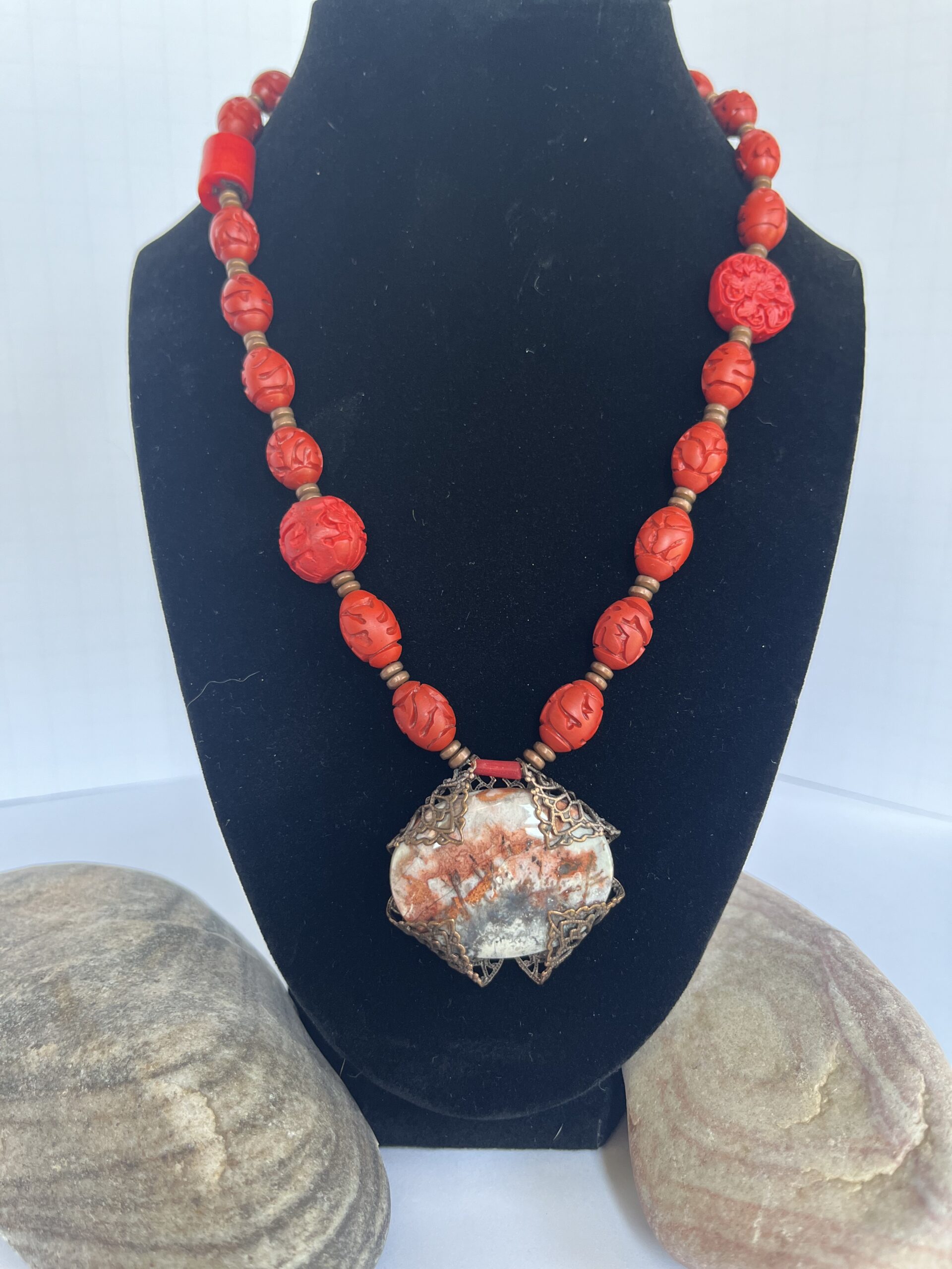 Cinnabar Stone Cabachon Necklace